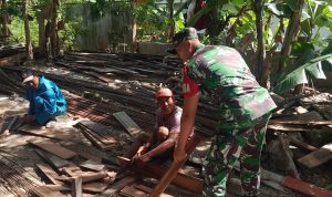 Selanjutnya, Babinsa menyampaikan kepada masyarakat yang sedang bekerja memperbaiki tiang tiang rumah yang sudah keropos supaya bekerja dengan hati hati dan perhatikan faktor keselamatan dalam bekerja.