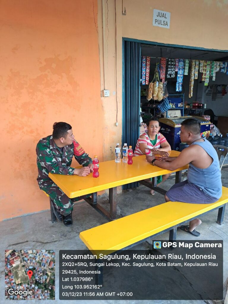 Batam (DK) – Bintara Pembina Desa (Babinsa) Kelurahan Bengkong Laut, Serka Epi Johar.melaksanakan Komunikasi Sosial (Komsos) dengan warga di wilayah binaan.