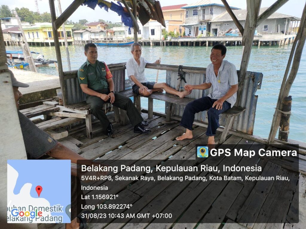 Batam (DK) – Bintara Pembina Desa (Babinsa) Serka P. Panjaitan Koramil 05/BLP, menghadiri kegiatan pertemuan dan silaturahmi Wali Kota Batam, Muhammad Rudi bersama warga.
