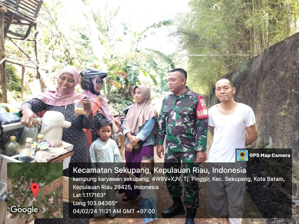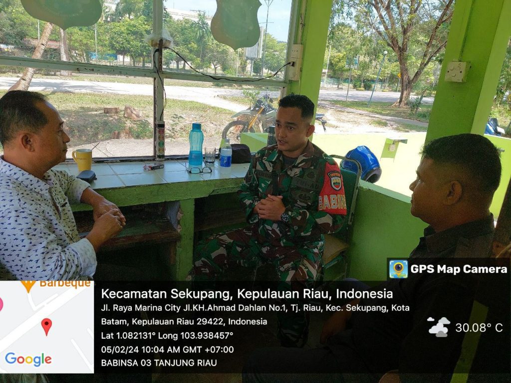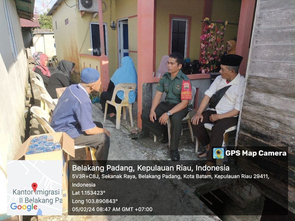 Batam (DK) – Bintara Pembina Desa (Babinsa) 16 Kelurahan Kibing Koramil 02/Sekupang, Serda Marzen Tanjung melaksanakan kegiatan Komunikasi Sosial (Komsos) bersama warga di wilayah binaan.