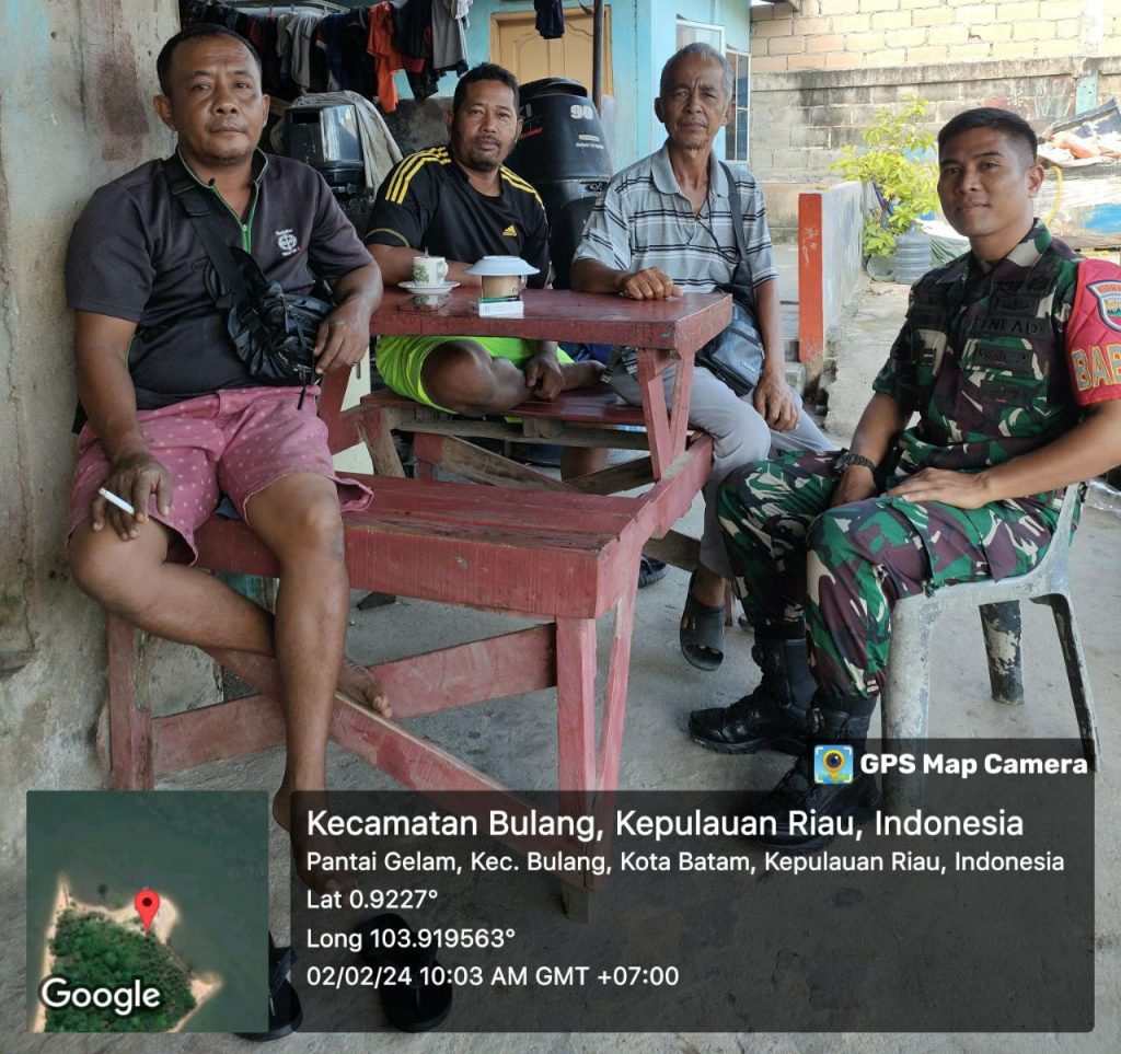 Batam (DK) – Bintara Pembina Desa (Babinsa) 16 Kelurahan Kibing Koramil 02/Sekupang, Serda Marzen Tanjung melaksanakan kegiatan Komunikasi Sosial (Komsos) bersama warga di wilayah binaan.