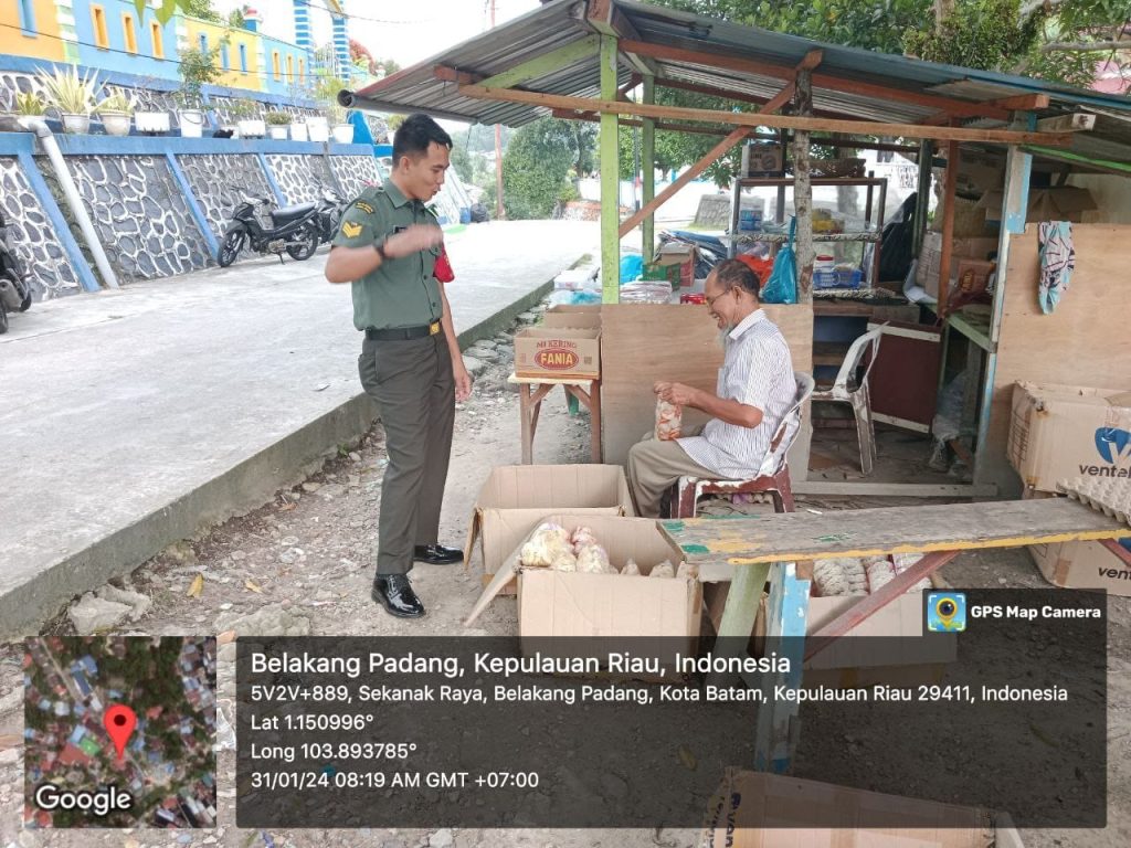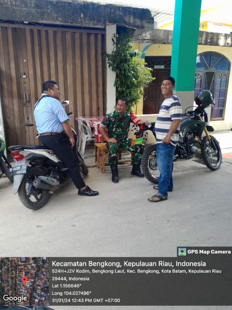 Batam (DK) – Bintara Pembina Desa (Babinsa) 16 Kelurahan Kibing Koramil 02/Sekupang, Serda Marzen Tanjung melaksanakan kegiatan Komunikasi Sosial (Komsos) bersama warga di wilayah binaan.