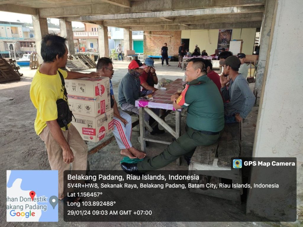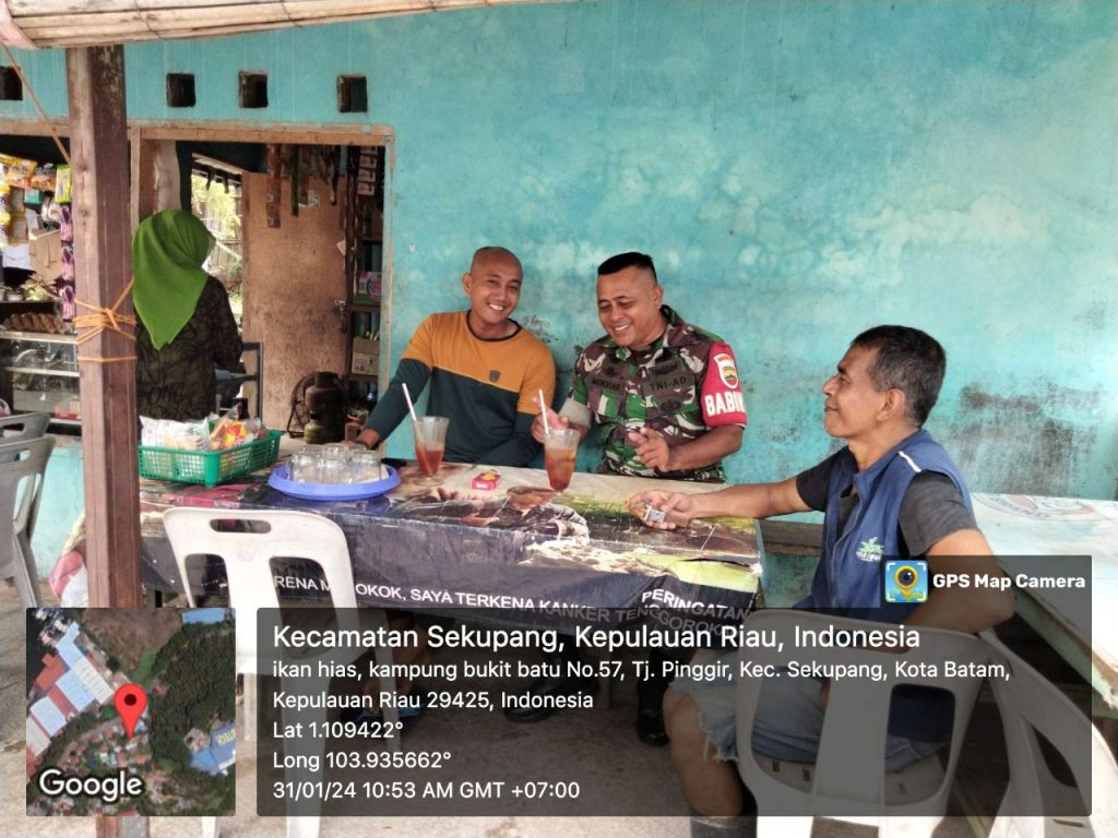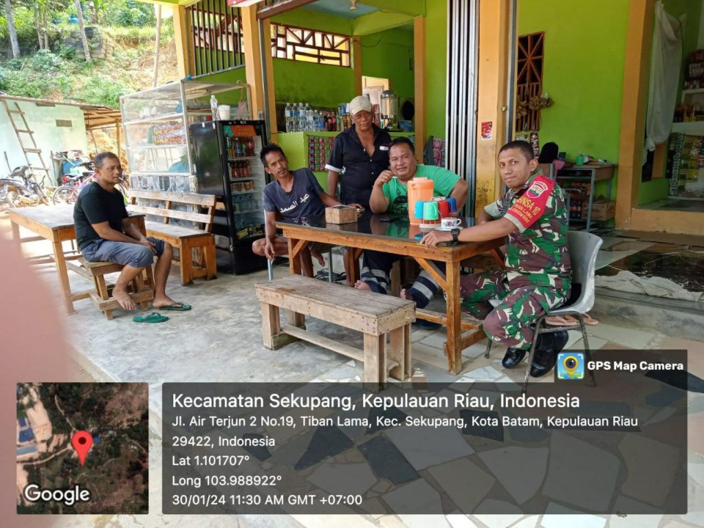 Batam (DK) – Bintara Pembina Desa (Babinsa) 16 Kelurahan Kibing Koramil 02/Sekupang, Serda Marzen Tanjung melaksanakan kegiatan Komunikasi Sosial (Komsos) bersama warga di wilayah binaan.