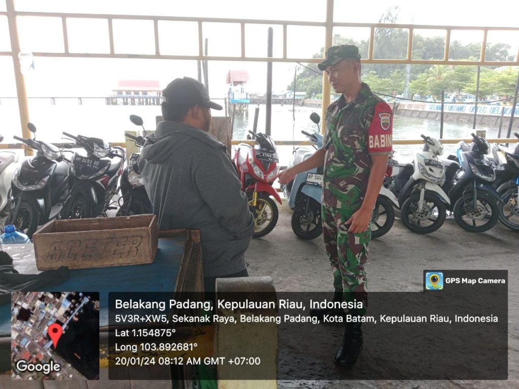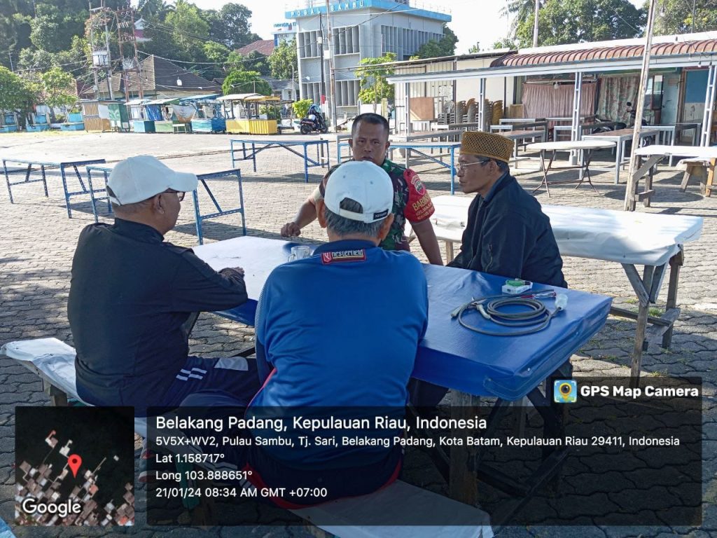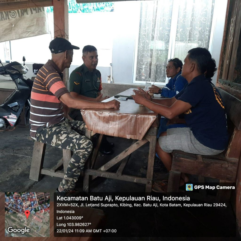 Batam (DK) – Bintara Pembina Desa (Babinsa) 16 Kelurahan Kibing Koramil 02/Sekupang, Serda Marzen Tanjung melaksanakan kegiatan Komunikasi Sosial (Komsos) bersama warga di wilayah binaan.