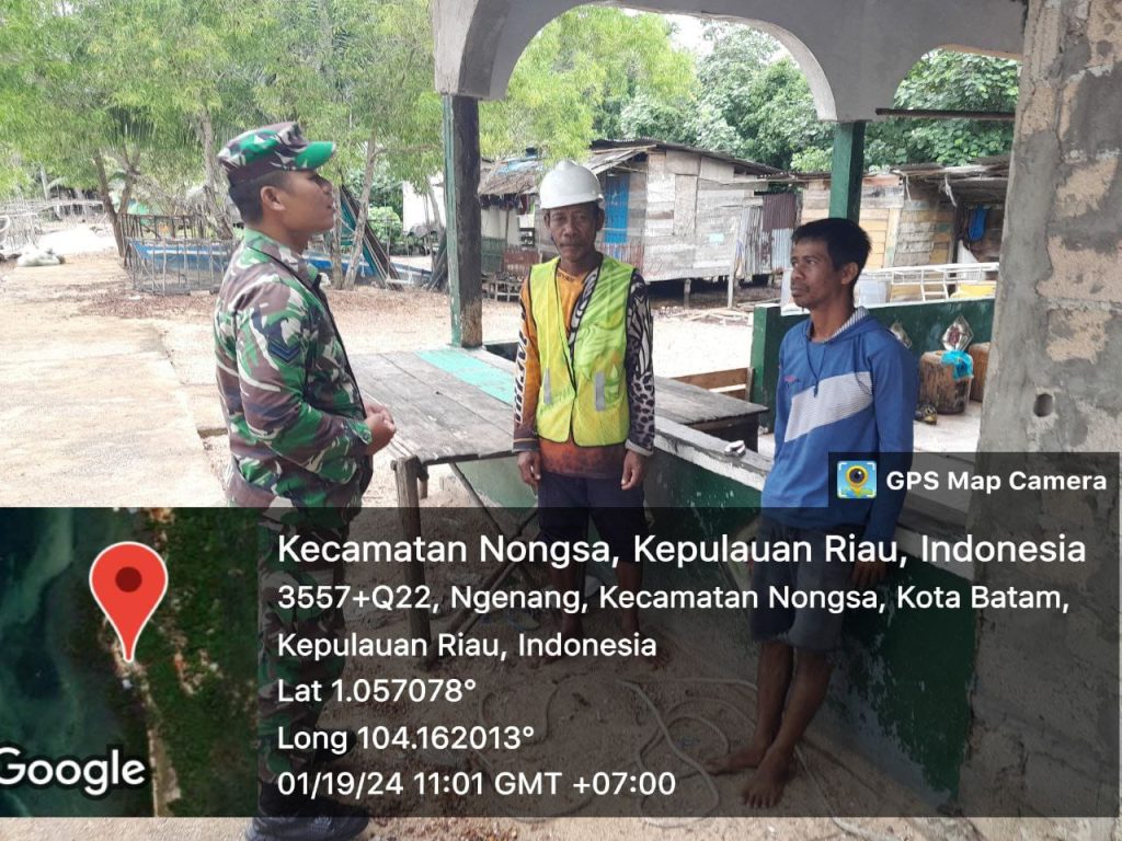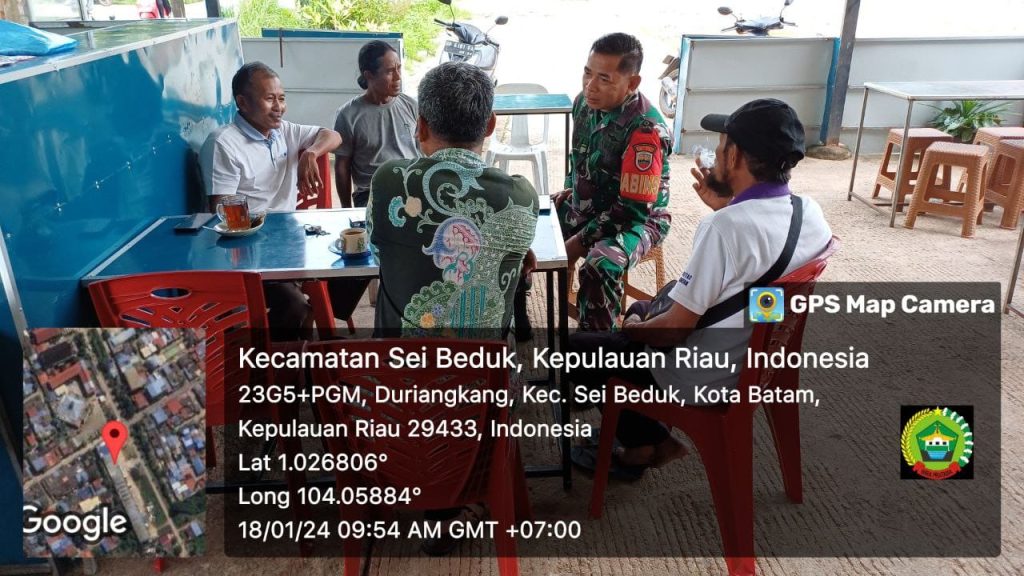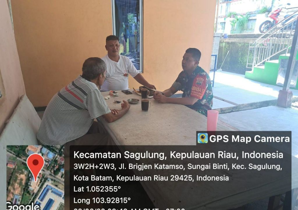Batam (DK) – Bintara Pembina Desa (Babinsa) 16 Kelurahan Kibing Koramil 02/Sekupang, Serda Marzen Tanjung melaksanakan kegiatan Komunikasi Sosial (Komsos) bersama warga di wilayah binaan.