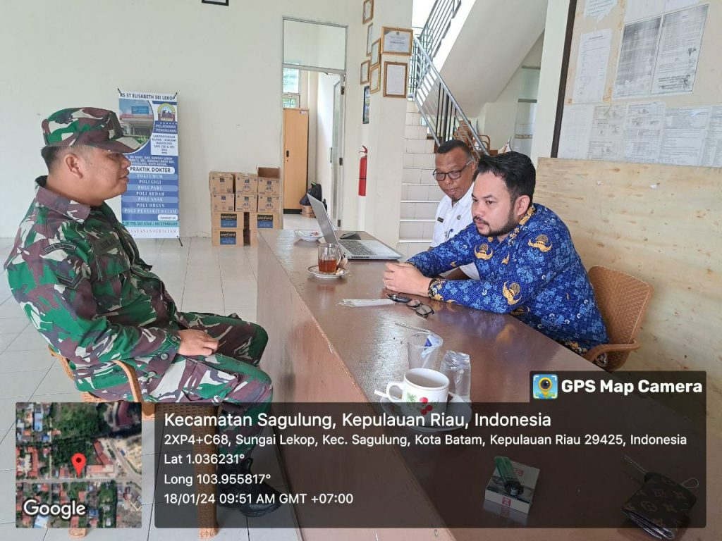 Batam (DK) – Bintara Pembina Desa (Babinsa) 16 Kelurahan Kibing Koramil 02/Sekupang, Serda Marzen Tanjung melaksanakan kegiatan Komunikasi Sosial (Komsos) bersama warga di wilayah binaan.