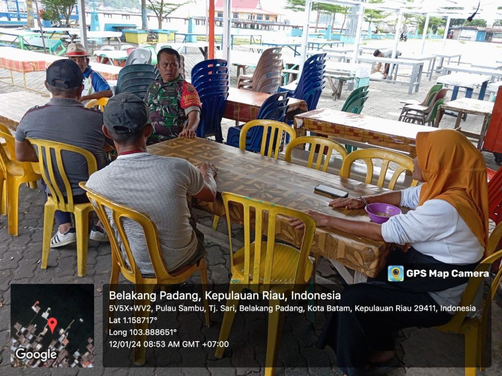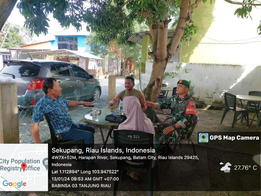 Batam (DK) – Bintara Pembina Desa (Babinsa) 16 Kelurahan Kibing Koramil 02/Sekupang, Serda Marzen Tanjung melaksanakan kegiatan Komunikasi Sosial (Komsos) bersama warga di wilayah binaan.