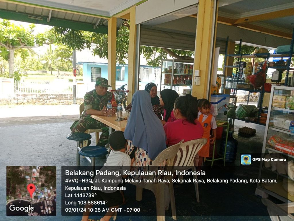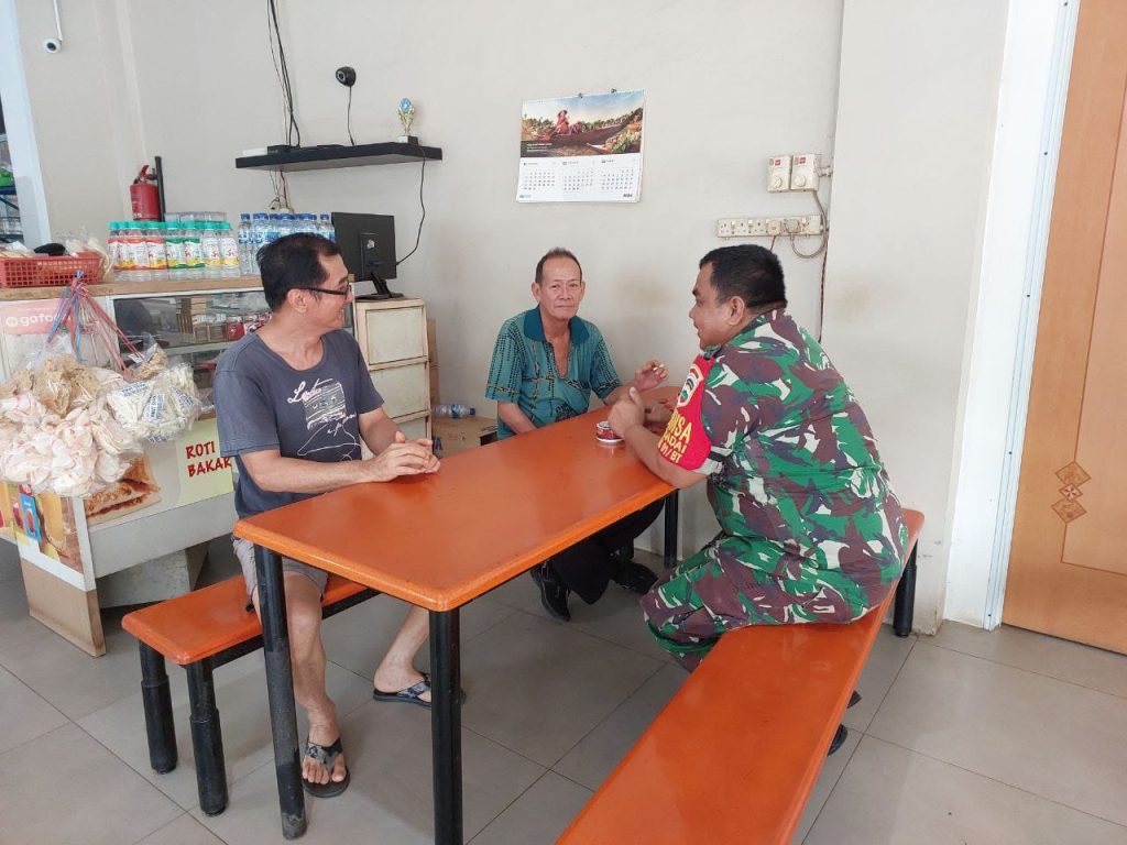 Batam (DK) – Bintara Pembina Desa (Babinsa) 16 Kelurahan Kibing Koramil 02/Sekupang, Serda Marzen Tanjung melaksanakan kegiatan Komunikasi Sosial (Komsos) bersama warga di wilayah binaan.