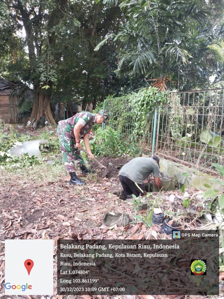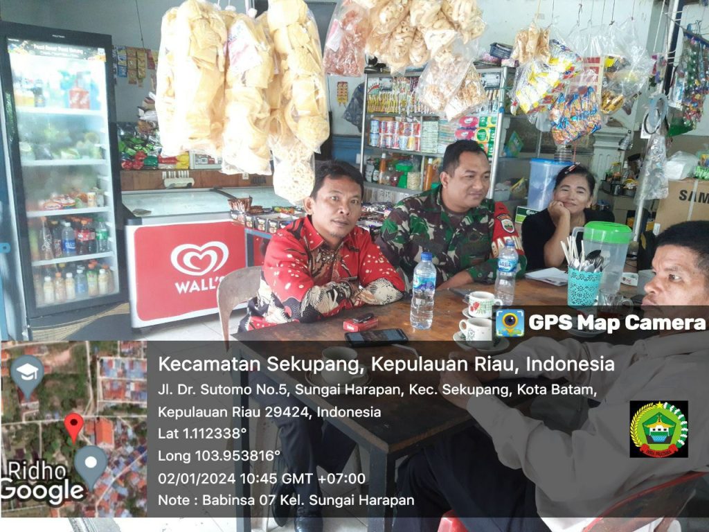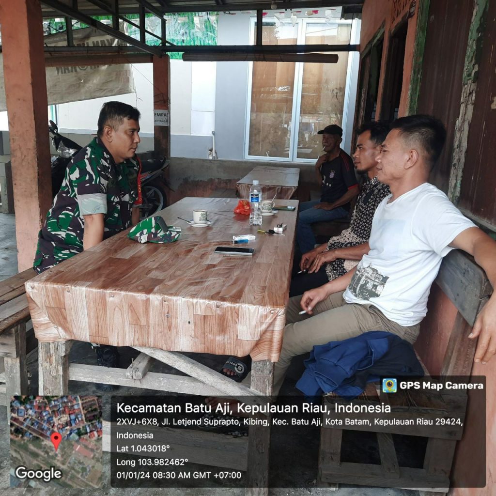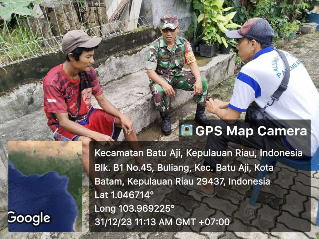 Batam (DK) – Bintara Pembina Desa (Babinsa) 16 Kelurahan Kibing Koramil 02/Sekupang, Serda Marzen Tanjung melaksanakan kegiatan Komunikasi Sosial (Komsos) bersama warga di wilayah binaan.