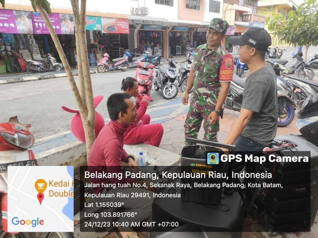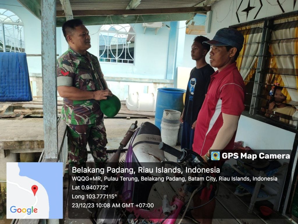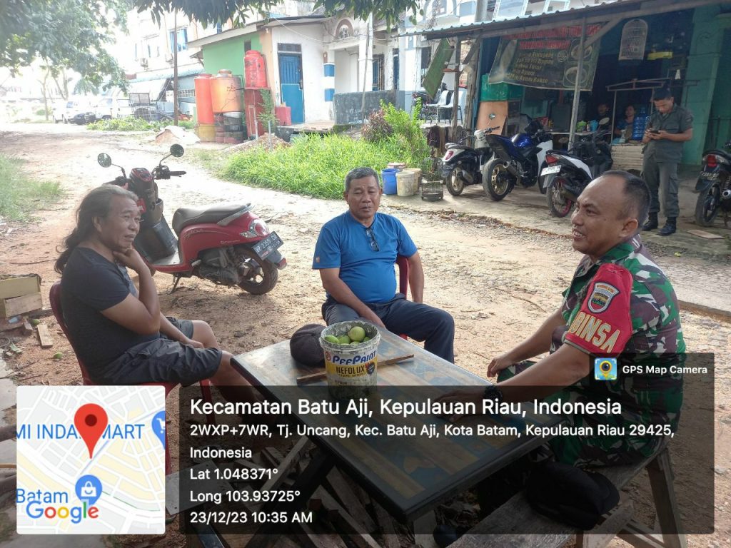 Batam (DK) – Bintara Pembina Desa (Babinsa) 16 Kelurahan Kibing Koramil 02/Sekupang, Serda Marzen Tanjung melaksanakan kegiatan Komunikasi Sosial (Komsos) bersama warga di wilayah binaan.