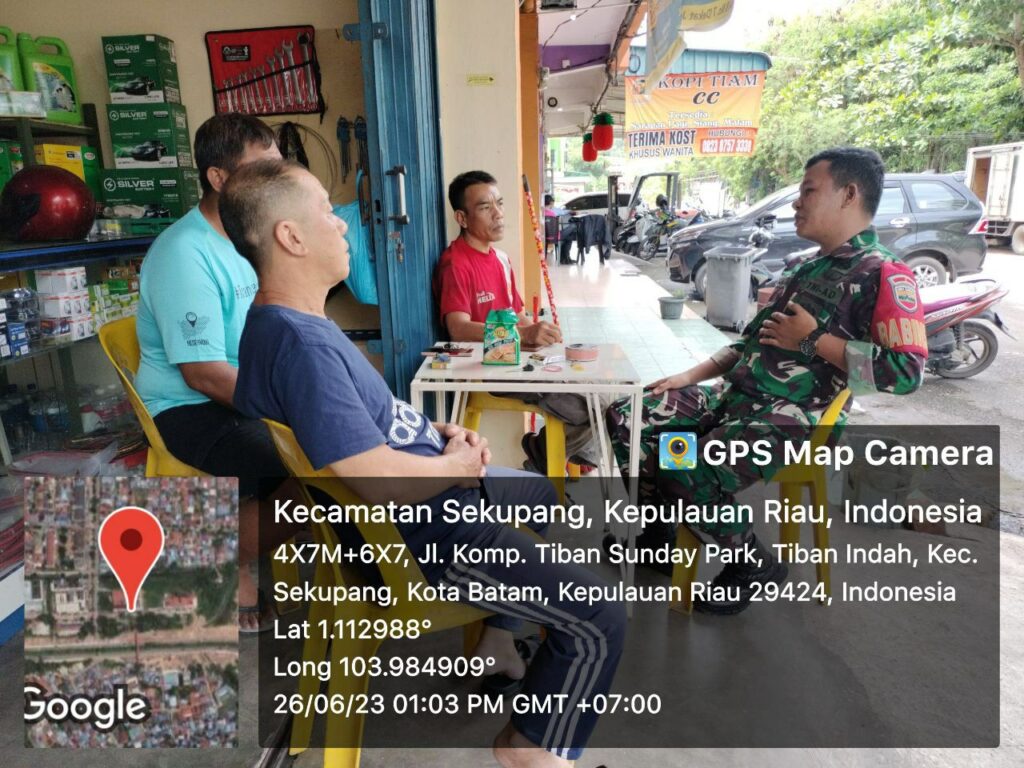 Batam (DK) – Bintara Pembina Desa (Babinsa) 06 Kelurahan Kasu, Serda Banjarnahor melaksanakan kegiatan Komunikasi Sosial (Komsos) dengan warga di wilayah binaan.