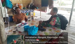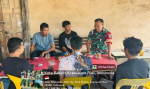 Batam (DK) – Bintara Pembina Desa (Babinsa) 06 Kelurahan Kasu Koramil 05/Belakangpadang, Serda O. Banjarnahor melaksanakan kegiatan Komunikasi Sosial (Komsos) dengan warga di wilayah binaan.