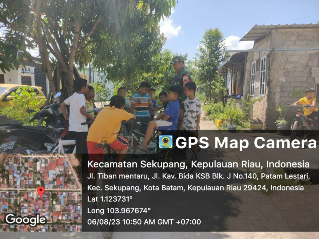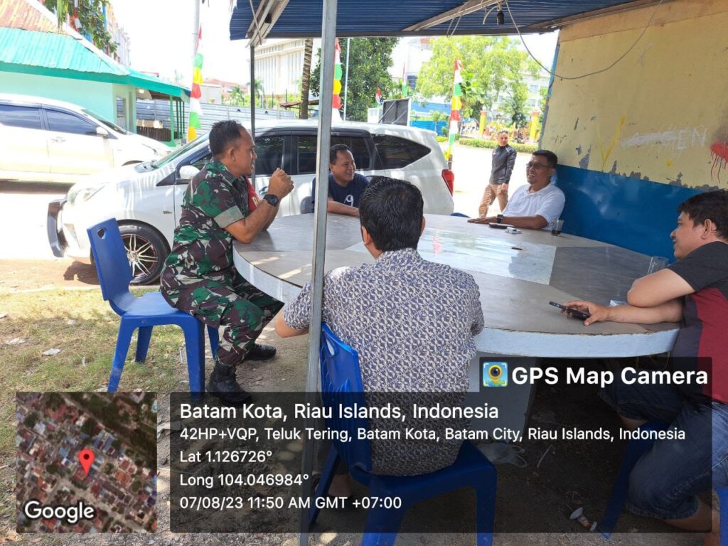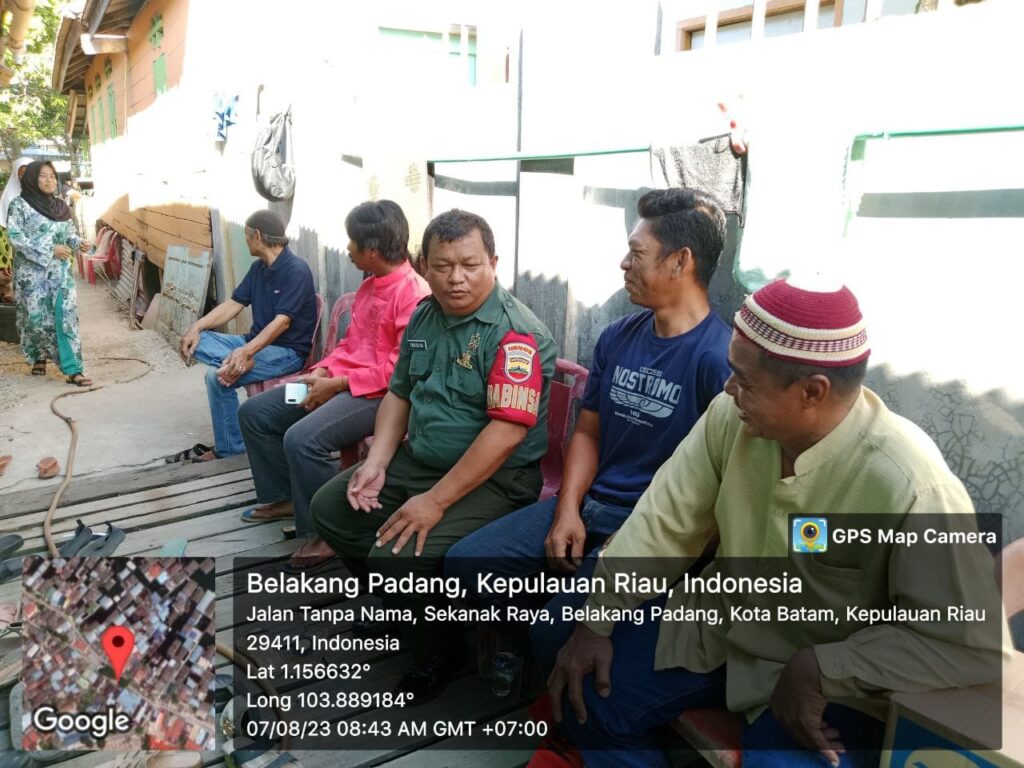 Batam (DK) – Bintara Pembina Desa (Babinsa) 06 Kelurahan Tanjung Pinggir Koramil 02/Sekupang, Sertu Mukhtar melaksanakan kegiatan Komunikasi Sosial (Komsos) bersama warga di wilayah binaan.