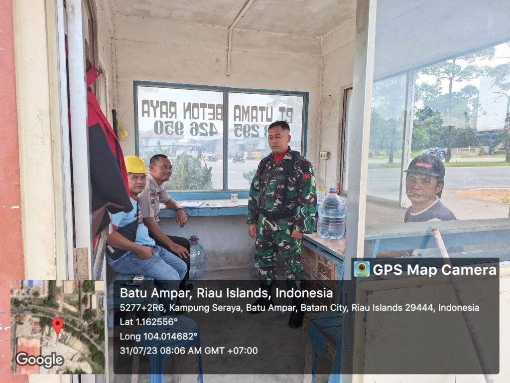 Batam (DK) – Bintara Pembina Desa (Babinsa) 06 Kelurahan Tanjung Pinggir Koramil 02/Sekupang, Sertu Mukhtar melaksanakan kegiatan Komunikasi Sosial (Komsos) bersama warga di wilayah binaan.