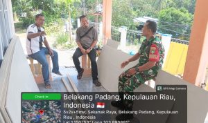 BATAM (DK)– Bintara Pembina Desa (Babinsa) 04 Kelurahan Pecong Koramil 05 Belakangpadang, Serda Janti Simarmata melaksanakan kegiatan Komunikasi Sosial (Komsos) dengan warga binaan.