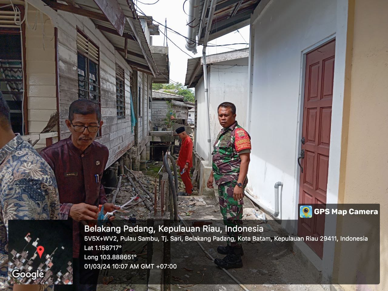 BATAM (DK) – Bintara Pembina Desa (Babinsa) 02 Kelurahan Tanjung Sari Koramil 05 /Belakangpadang, Serda Roni Sitorus melaksanakan Mediasi dan Pengukuran Tanah salah seorang warga di wilayah binaan.
