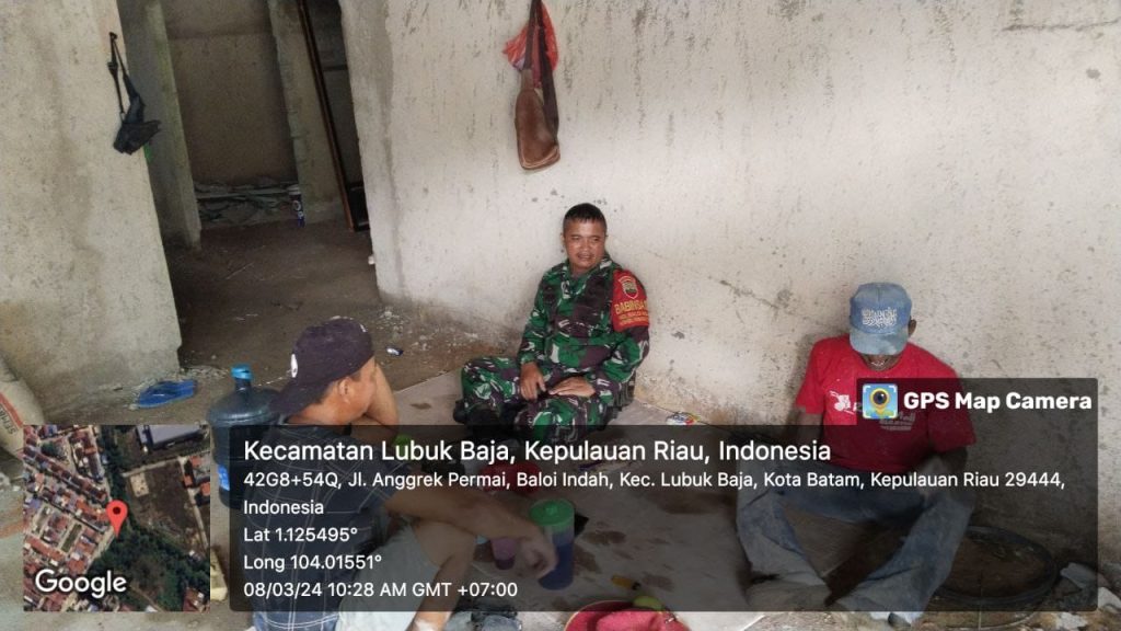 BATAM (DK) – Bintara Pembina Desa (Babinsa) 06 Kelurahan Tanjung pinggir Koramil 02/Sekupang, Sertu Mukhtar melaksanakan kegiatan Komunikasi Sosial (Komsos) bersama dengan warga di wilayah binaan.