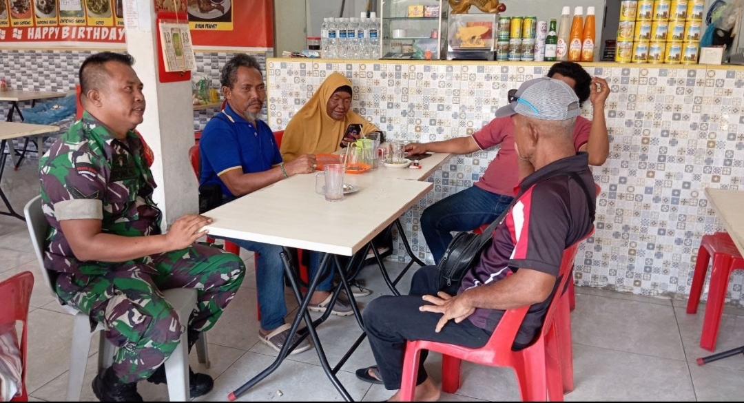 Batam- (DK)-Babinsa 02 Serda Roni Sitorus melaksanakan kegiatan komsos dengan ketua Nelayan PNUM (perkumpulan nelayan umum madani)dan Ketua Nelayan Pelantar bertempat di kedai kopi Koko Katek kelurahan Tanjung Sari, Senin (11/3/2024) pukul 09.00 .
