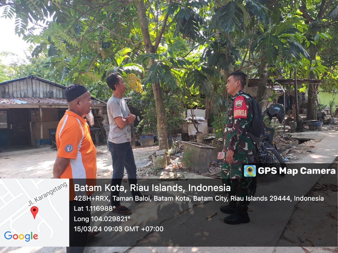 BATAM (DK) – Bintara Pembina Desa (Babinsa) 04 Taman Baloi Koramil 03/Nongsa, Sertu Alex melaksanakan kegiatan Komunikasi Sosial (Komsos) sekaligus Monitoring wilayah binaan.