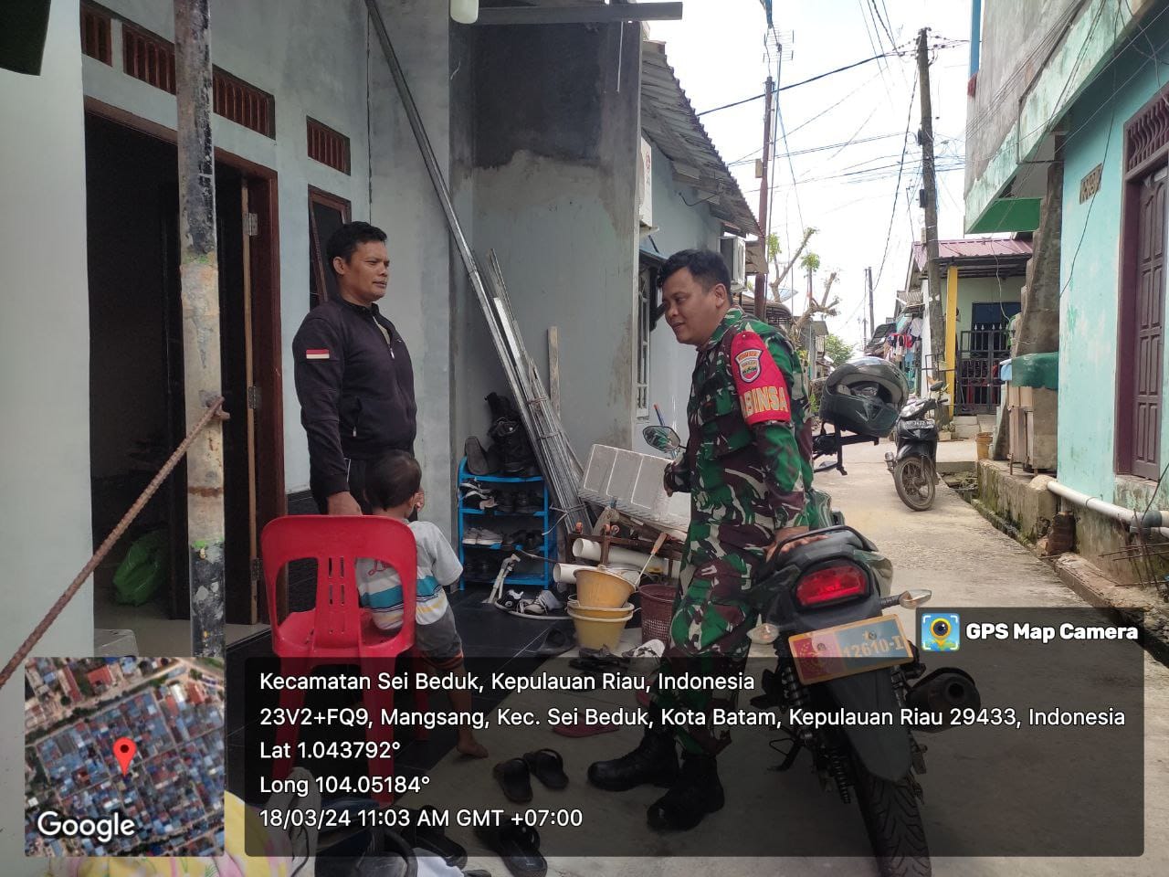 BATAM (DK)– Bintara Pembina Desa (Babinsa) 17 Kelurahan Mangsang Koramil 01/Lubuk Baja, Serma Hery Poerwanto melaksanakan kegiatan Komunikasi Sosial (Komsos) bersama dengan warga di wilayah binaan.