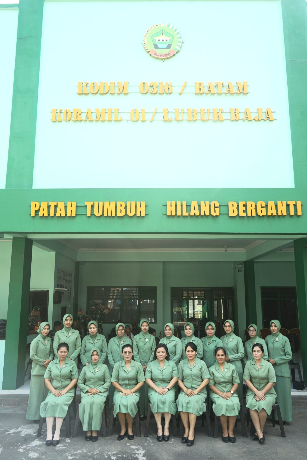 Hadir pada kunker tersebut, Dandim 0316 Rooy Chandra Sihombing., S.I.P., M.M , Ketua Persit KCK Cab LXIX Dim 0316 Batam,Ny.dr Rieaka Rooy Chandra Sihombing,Danramil 01, Kapt Inf Samjos sirait, para pasi, personil koramil 01, Anggota Persit KCK Cab LXIX 0316 Batam.