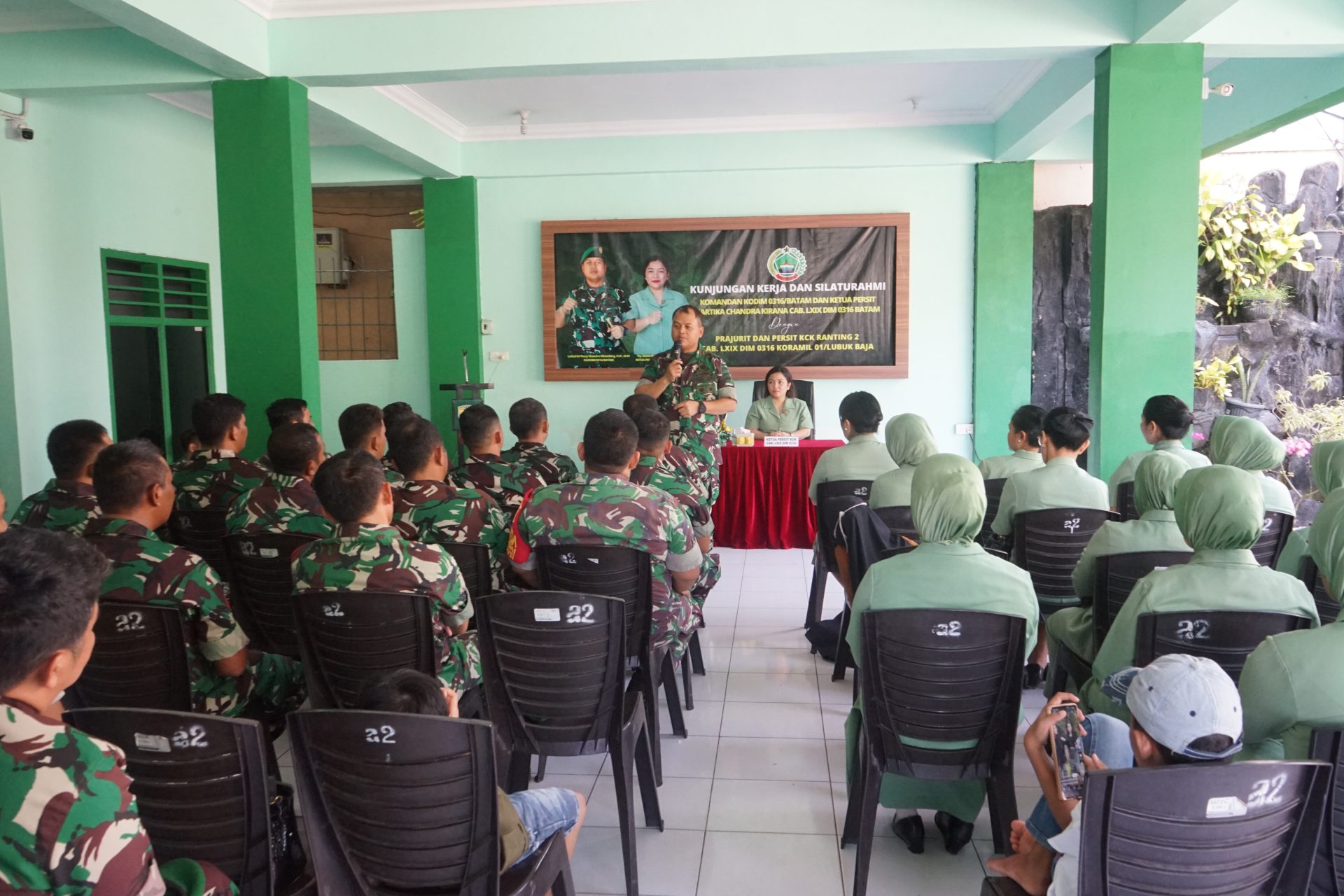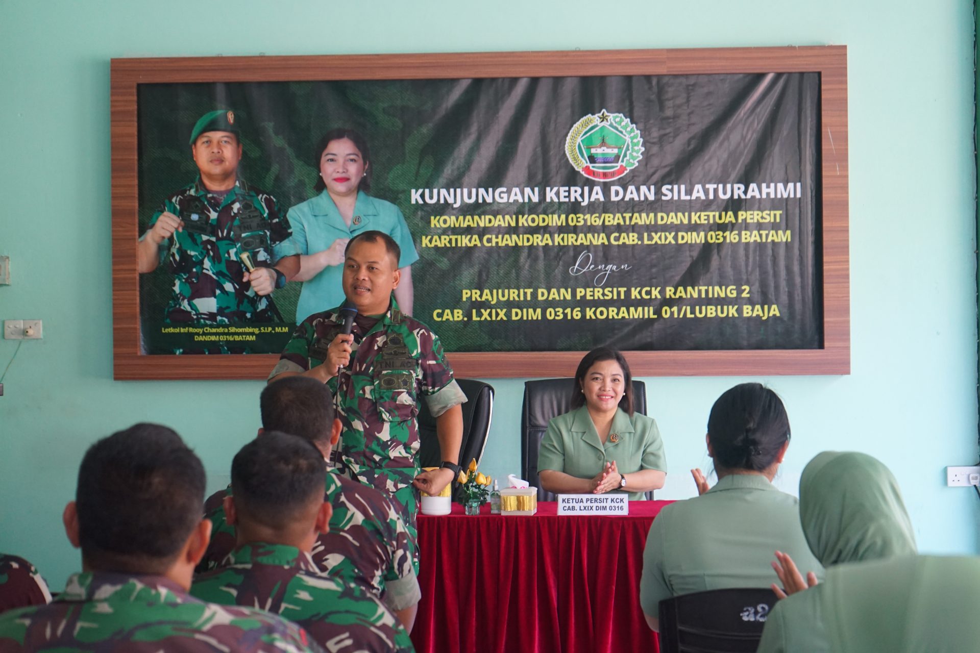 Batam (DK)- Mengawali tugas di Kodim 0316/Batam Letkol Inf Rooy Chandra Sihombing., S.I.P., M.M, dan Ketua Persit KCK Cab LXIX DIM 0316Batam Ny.dr Rieaka Rooy Chandra Sihombing, melaksanakan Kunjungan kerja Perdana ke Koramil 01/Batam Timur,Lubuk Baja. Selasa (25/03/2024).