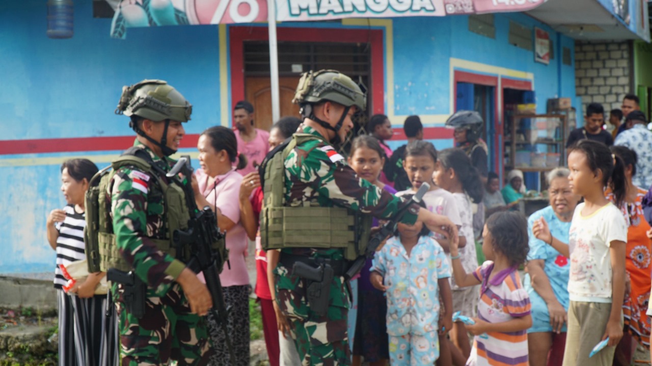 Keerom(Dk) – Satgas Pamtas Yonif 131/BRS Pos Kotis yang dipimpin Mayor Inf Dedi Harnoto di sambut hangat oleh warga Distrik Namen, Kabupaten Keerom, Papua.(20/09/2024).
