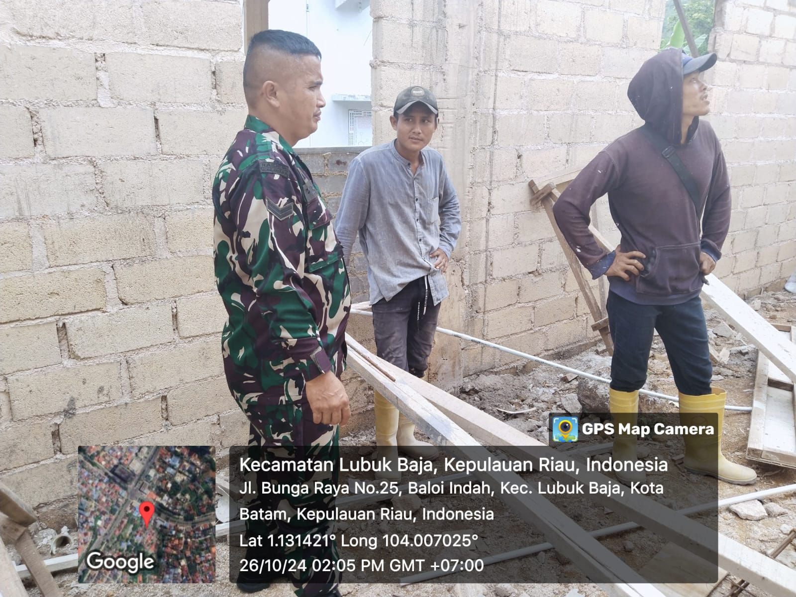 Batam[DK]-Babinsa 09/Baloi Indah Koramil 01/Lubuk Baja Sertu P Lubis melaksanakan Komsos bersama pekerja bangunan bertempat di ruli Batu Bat RT 005 RW 005Kel:Baloi Indah Kec:Lubuk Baja.Sabtu [26/10/2024].