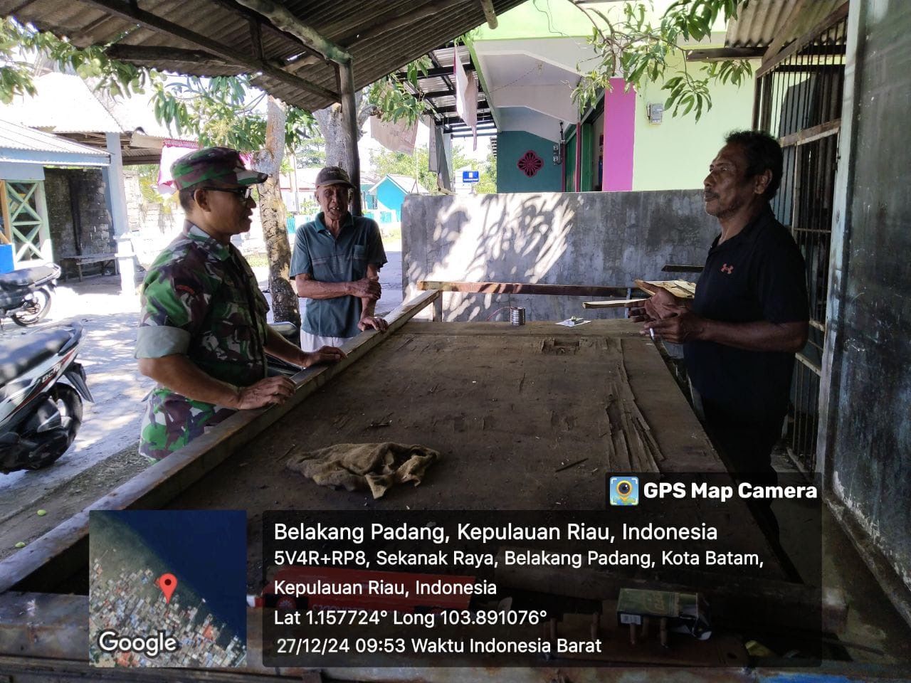 Batam- Babinsa 01 kelurahan Sekanak raya melaksanakan kegiatan komsos bersama warga binaan bertempat dikampung sekanak kelurahan Sekanak raya kecamatan Belakang padang.Jum,at [27/12/2024].
