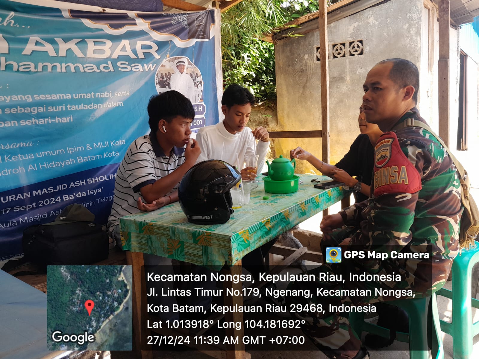 Batam- Babinsa 08 Kel.Ngenang Koramil 03/Nongsa Sertu Alexsander melaksanakan  komsos dengan anak anak yang sedang libur Sekolah, bertempat di kedai Bpk Raju Kel. Ngenang Kec. Nongsa.Jum,at [27/12/2024].
