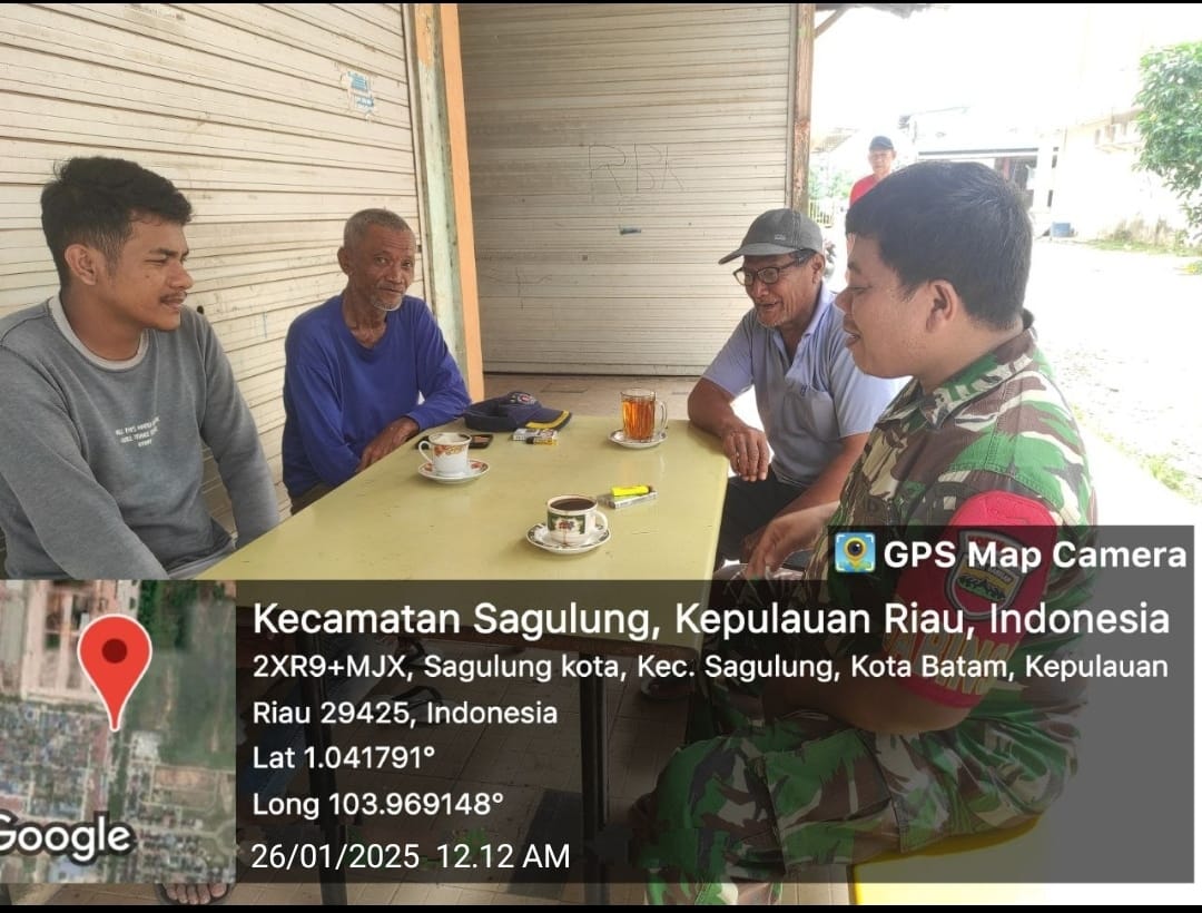Batam-Babinsa 02 Kelurahan Sagulung Kota Serda J.Manalu melaksanakan kegiatan Komsos bersama warga binaan di pasar PJB Kel. Sagulung kota Kec.Saguling.Minggu [26/01/2025].