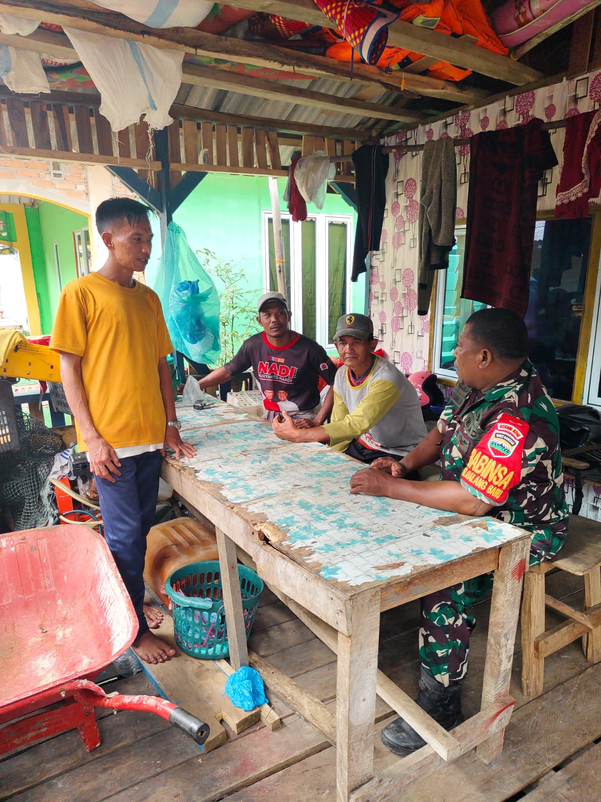 Batam-Babinsa 08 kel. Galang baru koramil O4/galang Serka Muhammad djaibakal melaksanakan kegiatan komsos bersama warga binaan bertempat di Rt 01,Rw 06 ,rumah Bpk Boby, kampung baru kel galang baru kec. Galang.Senin [27/01/2025].