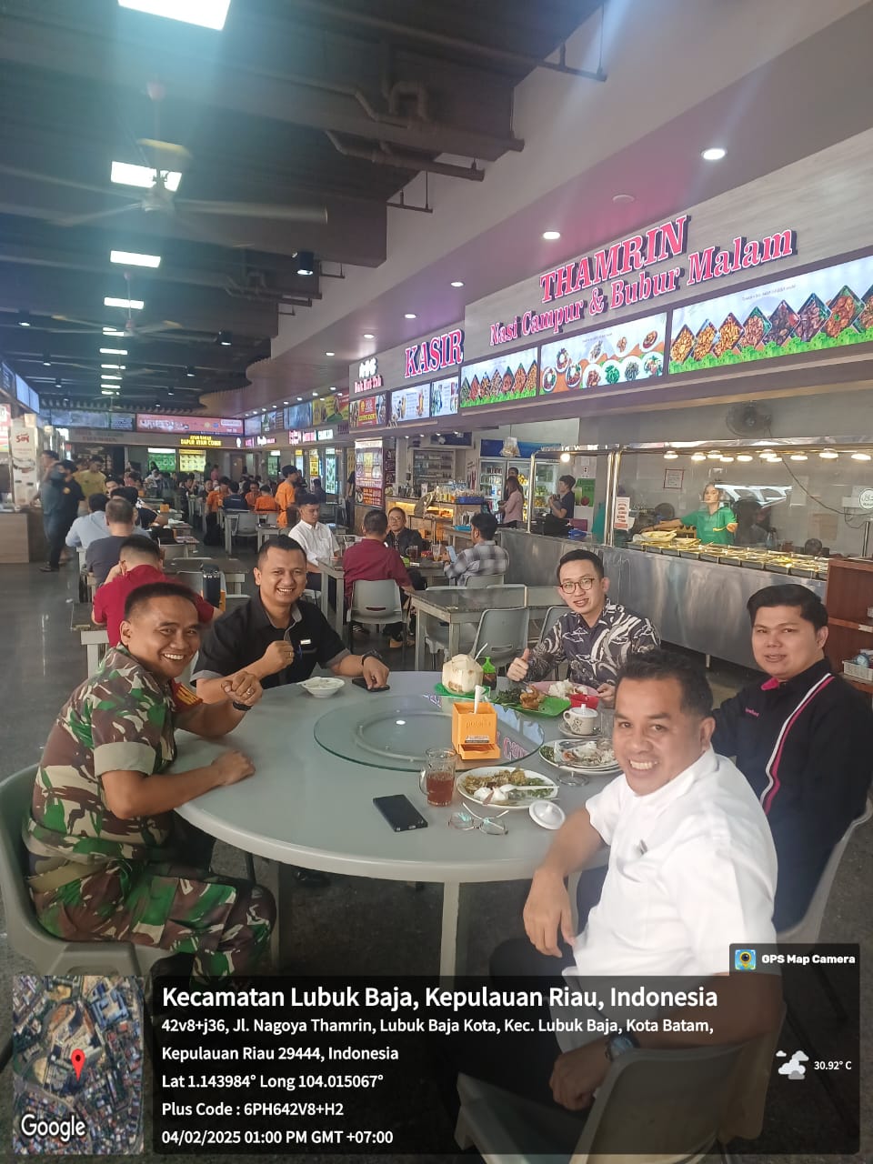 Batam- Babinsa 08 Lubuk Baja Kota Koramil 01/LB Koptu Kamber Simbolon melaksanakan komsos bersama Menagement FaveHotel bertempat di Thamrin Nasi Campur dan Bubur Malam Kel.Lubuk Baja kota Kec .Lubuk Baja Kota Batam.Selasa [04/02/2025].