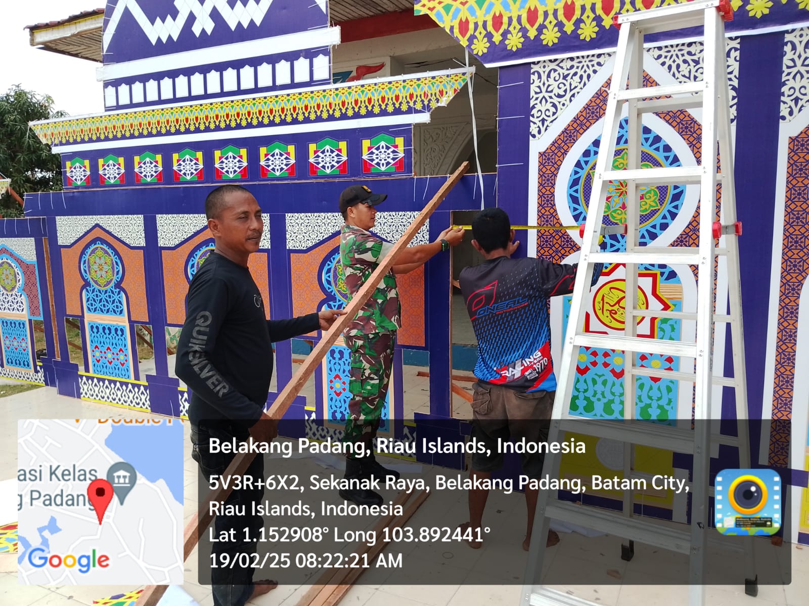 Batam-Babinsa 06/Kasu.Serda O.Banjarnahor, melaksanakan kegiatan Komsos bersama dengan  warga, yang sedang mempersiapkan tempat dalam rangka acara MTQ tingkat kecamatan,dan ikut serta membantu sehingga dalam proses pelaksanaannya dapat terselesaikan dengan cepat, bertempat di lapangan indra sakti Kelurahan sekanak Raya