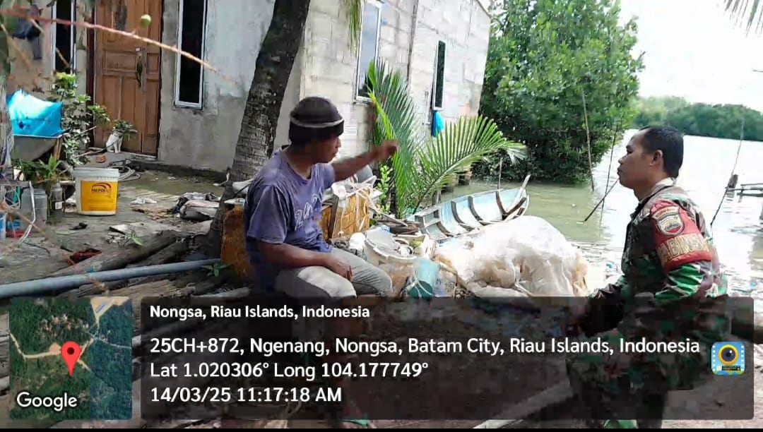 Batam-Babinsa 08 Ngenang Sertu Alexsander Koramil 03/Nongsa melaksanakan komsos bersama dengan warga binaan bertempat di dpn halaman rumah Bpk Khaidir Pulau Kubung Kel.Ngenang Kec nongsa.Jum’at [14/03/2025].