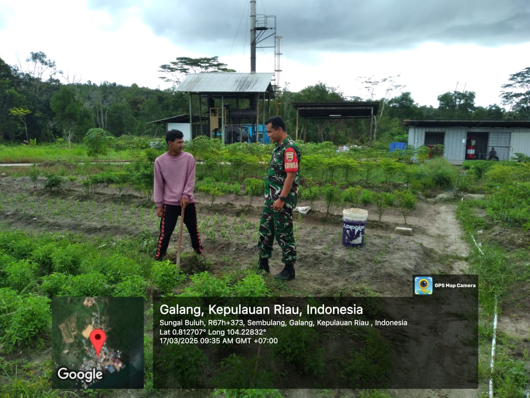 Batam-Babinsa 07 kel. Sijantung Koramil 04/Galang serda Dedi Putra melaksanakan kegiatan komsos ketahanan pangan bersama karyawan PT MEG bertempat di RSKI kel. Sijantung, kec. Galang.Senin [17/03/2025].