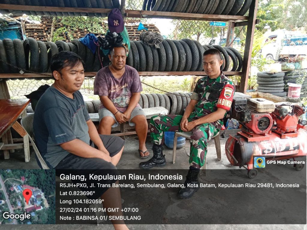 Komsos Bersama Warga Binaan, Babinsa 13 Kelurahan Tiban Baru Koramil 02/Sekupang : Jaga Faktor Keamanan Lingkungan Kerja.