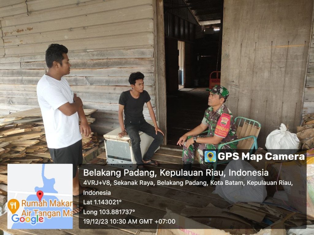 Komsos Bersama Warga Binaan, Babinsa 13 Kelurahan Tiban Baru Koramil 02/Sekupang : Jaga Faktor Keamanan Lingkungan Kerja.