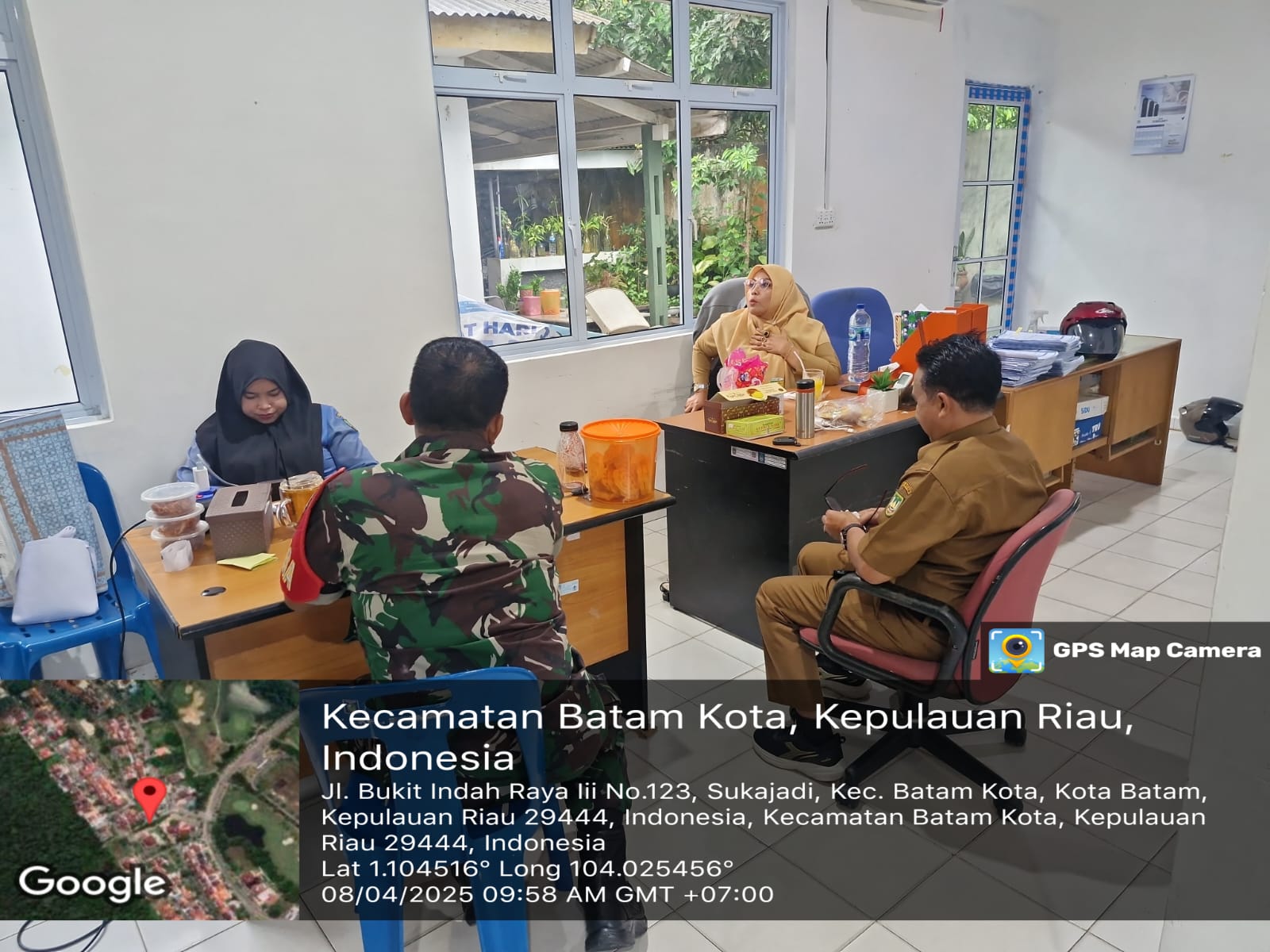 Batam-Babinsa 09 Sukajadi Koramil 03/Nongsa Serka Delfi indra melaksanakan kegiatan komsos dan silaturahmi bersama dengan perangkat kelurahan bertempat di Kantor lurah kelurahan Sukajadi kec. Batam Kota.Selasa [08/04/2025].