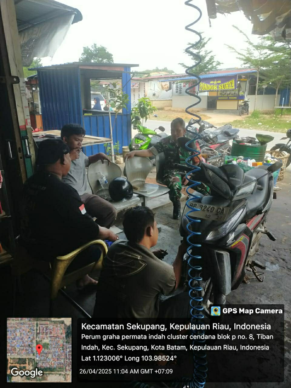 Batam-Babinsa 04 Tiban Indah Koramil 02/ Sekupang Sertu M.fitriadi melaksanakan kegiatan Komsos di wilayah binaan kel.Tiban Indah kec.Sekupang.Sabtu [26/04/2025].