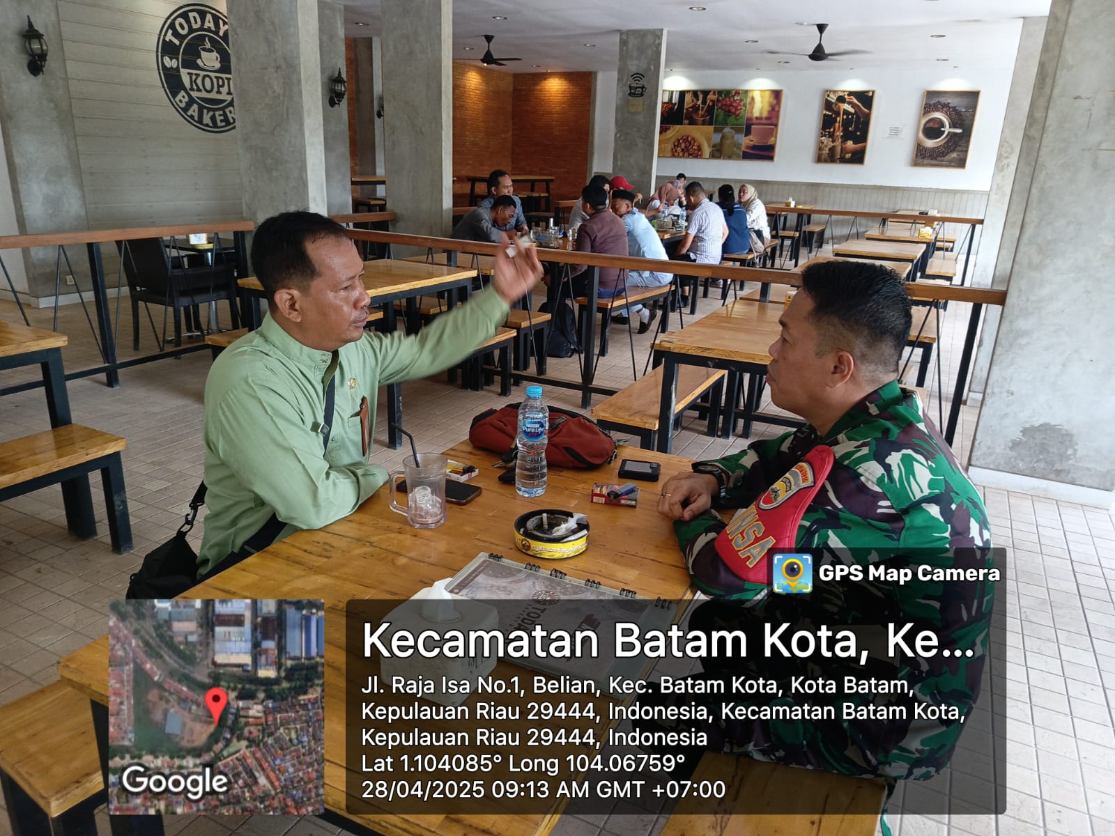 Babinsa 05 Baloi Permai Serda A.Marbun Koramil 03/Nongsa melaksanakan komsos bertempat di Coffe Today Kompleks Meditrania Kel Baloi Permai Kec Batam Kota.Senin [28/04/2025].