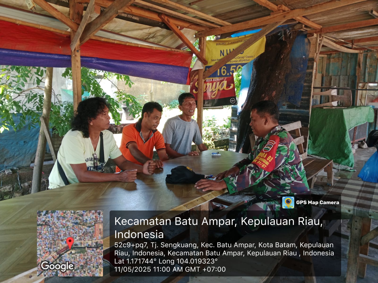 Batam-Babinsa 03/Kel Tanjung Sengkuang Koramil 01/LB Kopda Jakson Purba melaksanakan komsos di RT 02/RW 07 Kel Tanjung Sengkuang Kec Batu Ampar.Minggu [11/06/2025].