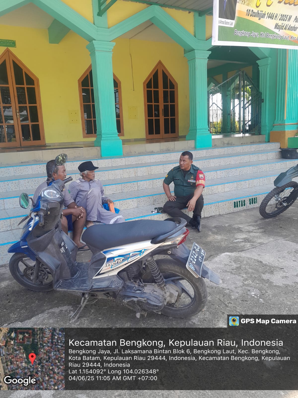 Batam- Babinsa 10 kel bengkong Laut Serma Epi johar melaksanakan Komsos Dengan Warga halaman masjid Al anshar Rw 07 Bengkong Jaya,Kel Bengkong Laut,Kec. Bengkong.Rabu [04/06/2025].