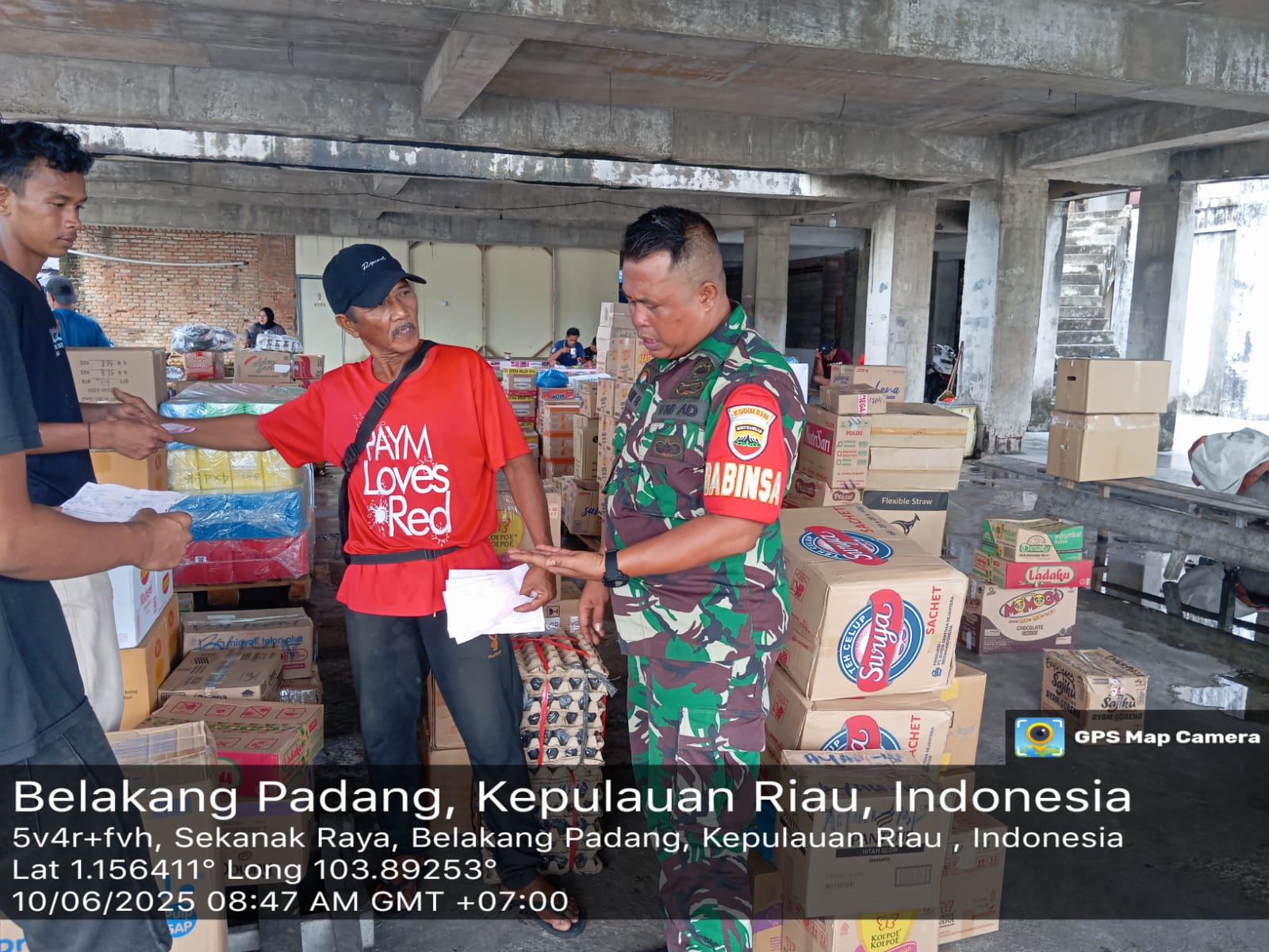Batam-Babinsa 02 Serda Roni Sitorus melaksanakan komsos dan monitoring wilayah binaan bertempat di pasar induk Kelurahan Tanjung Sari.Selasa [10/06/2025].