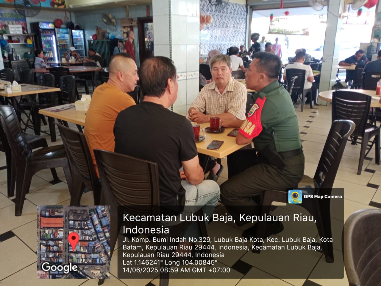 Batam-Serka Faizal, Babinsa 08 Kelurahan Lubuk Baja Kota Koramil 01/LB, melaksanakan kegiatan Komunikasi Sosial (Komsos) dalam rangka silaturahmi dan perkenalan dengan perangkat RT dan RW bertempat di Warung Kopi Instagram, Komplek Bumi Indah, Kelurahan Lubuk Baja Kota, Kecamatan Lubuk Baja. Sabtu(14/06/2025).