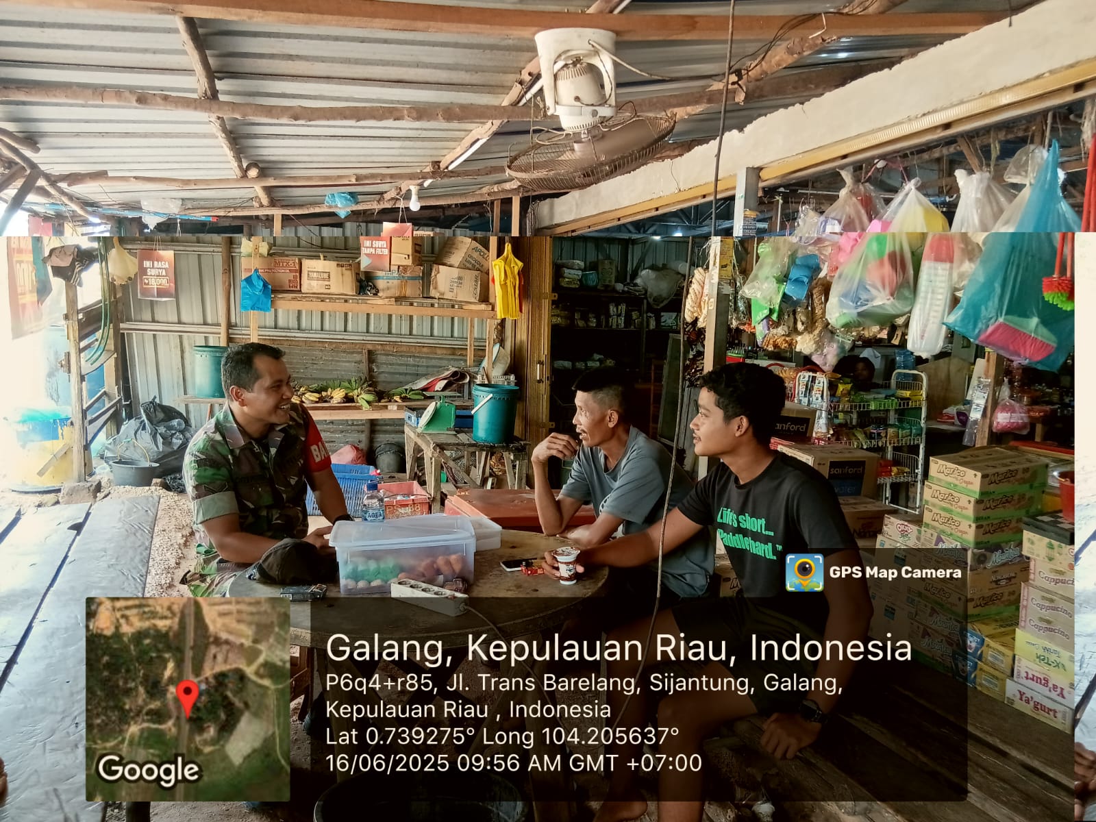 Batam- Babinsa 07 kel. Sijantung Koramil 04/Galang serda Dedi Putra melaksanakan kegiatan komsos bersama warga bertempat di RT 02 Kel. Sijantung kec. Galang.Senin [16/06/2025].