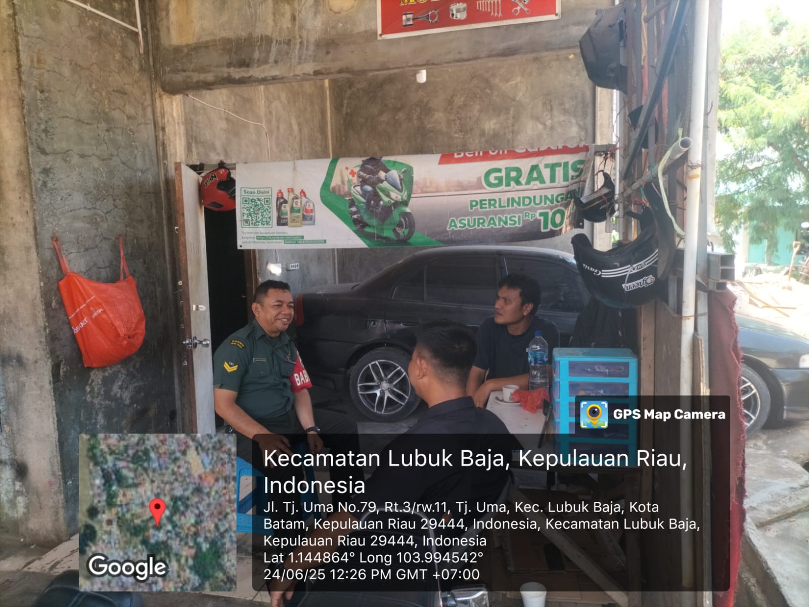 Batam-Babinsa 07 Tg Uma Sertu Thomsony Siregar Koramil 01 Lubuk Baja melaksanakan Komsos bersama warga di kampung Tanjung teritip RT 003,RW 011 kelurahan Tanjung Uma kec Lubuk Baja kota Batam.Selasa [24/06/2025].