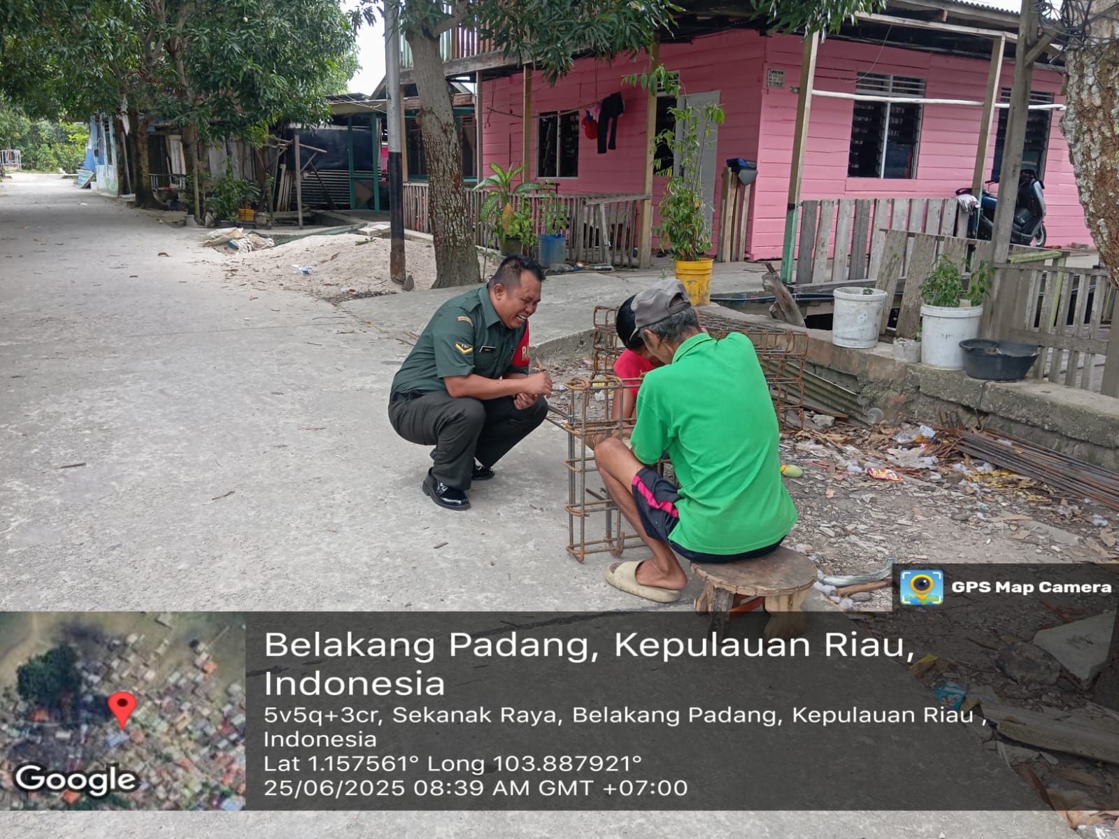 Batam-Babinsa 02 Koramil 05/BLP, Serda Roni Sitorus, melaksanakan kegiatan komunikasi sosial (Komsos) bersama warga binaan di RT 002/RW 004, Kampung Tanjung, Kelurahan Tanjung Sari. Rabu(25/06/2025).