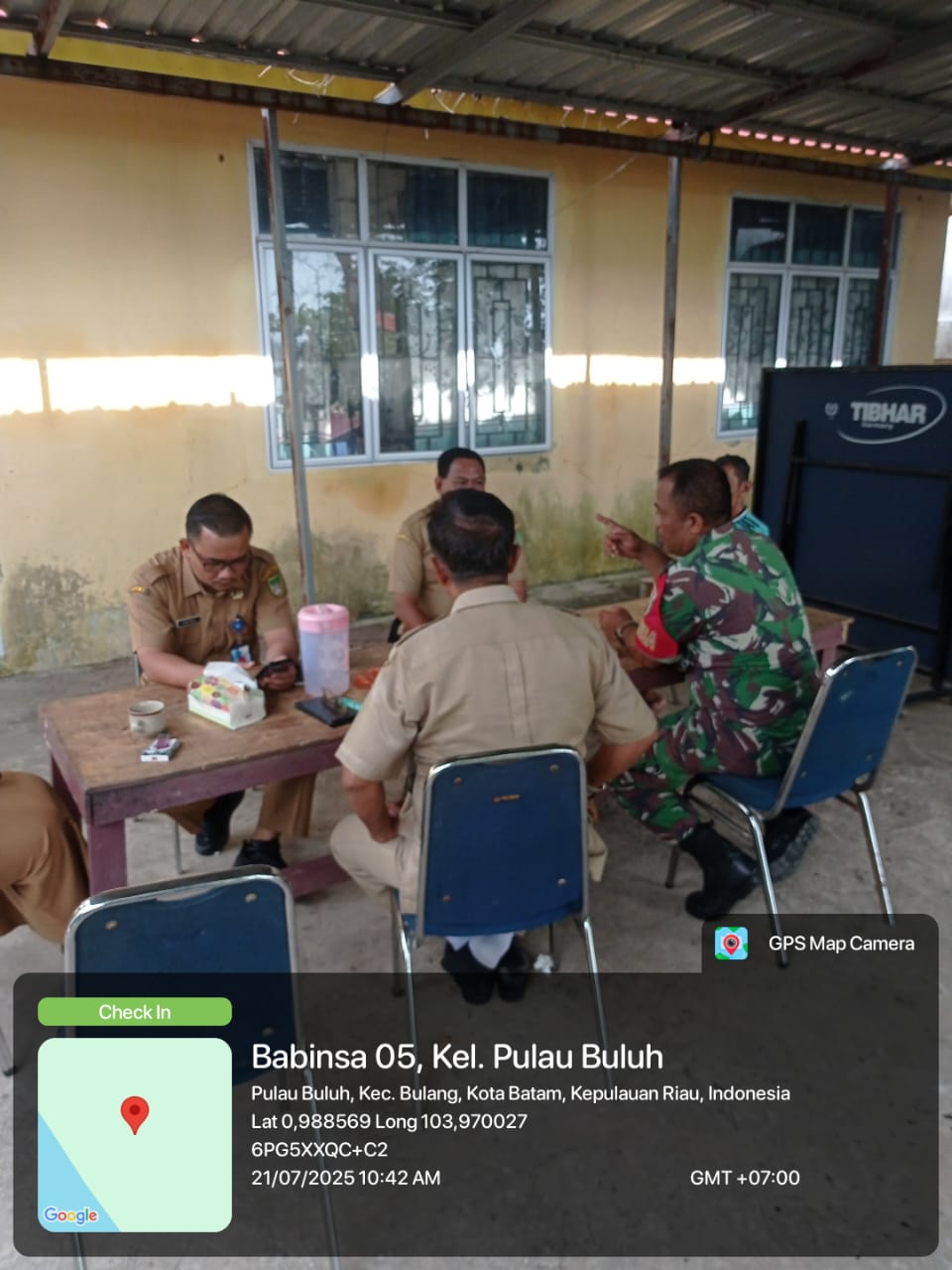 Batam-Babinsa 05 Kelurahan Pulau Buluh, Koramil 02/Sekupang melaksanakan kegiatan Anjangsana bersama dengan Staf Kelurahan Pulau Buluh bertempat di Kantor Lurah Pulau Buluh, Kecamatan Bulang.Senin [21/07/2025].
