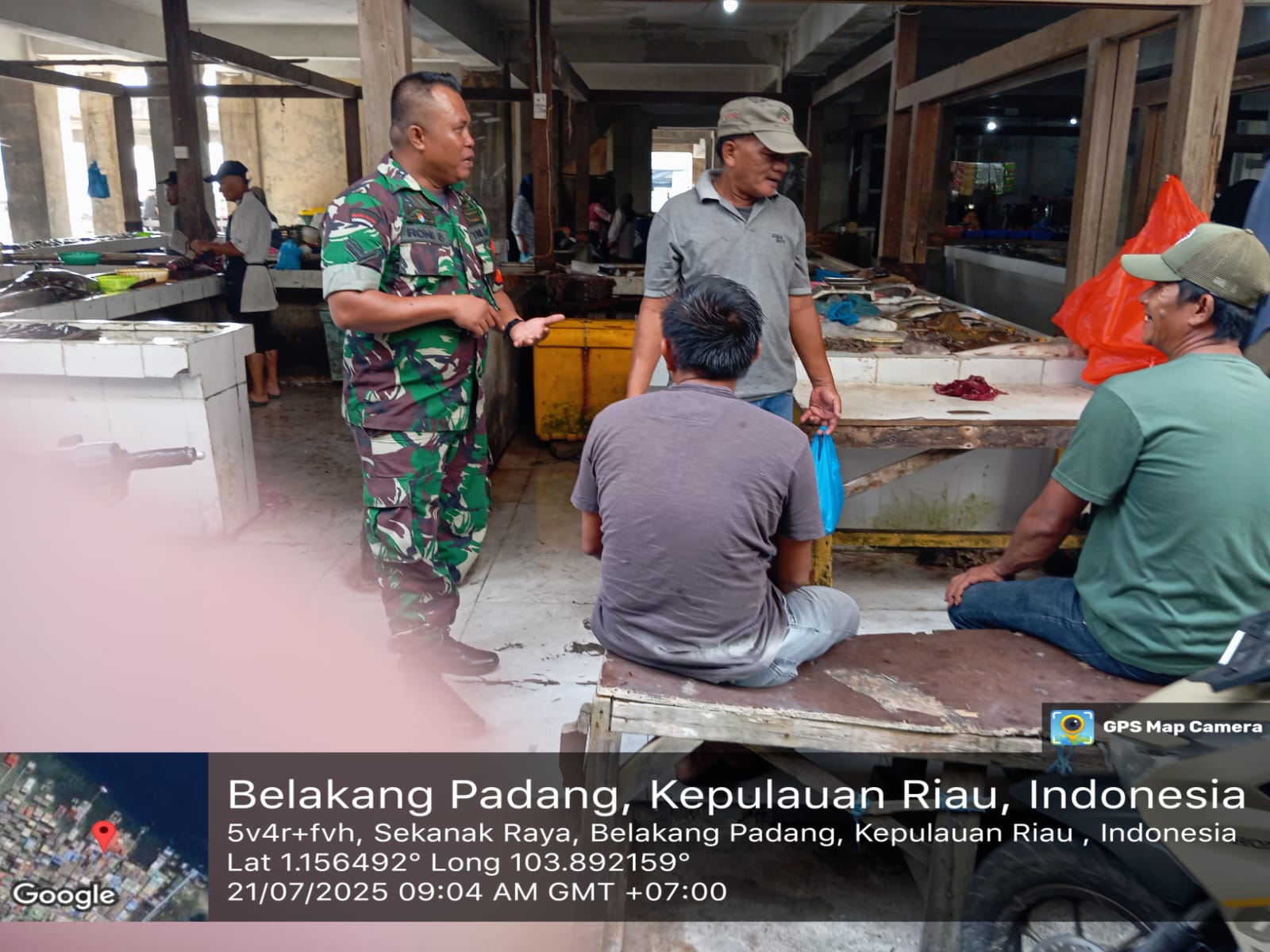 Batam- Babinsa 02 Serda Roni Sitorus melaksanakan kegiatan komsos dengan warga binaan bertempat di pasar Induk Kelurahan Tanjung Sari.Senin [21/07/2025].